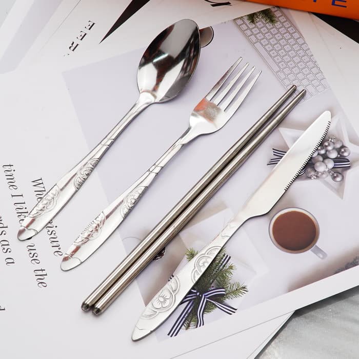 Jual S781s Set Alat Makan Pouch Sendok Garpu Pisau Sumpit Stainless Steel Set Sendok Makan Anak Stainless Indonesia Shopee Indonesia